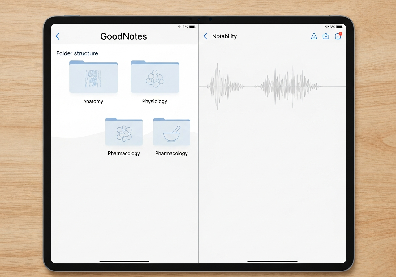 Piensa en GoodNotes como tu archivador digital perfecto. Su punto más fuerte es la organización mediante carpetas y subcarpetas, muy similar a como ordenas los archivos en un ordenador. Para una carrera con tantas asignaturas como Medicina, esto es oro puro.